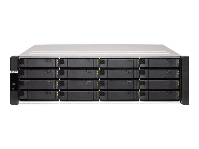 QNAP ES1686DC - NAS-server - 16 fack - kan monteras i rack - SAS 12Gb/s - RAID 0, 1, 5, 6, 10, JBOD, 5 hot spare, 6-reservsnabbyte, 10 hot spare, 1 hot spare - RAM 64 GB - Gigabit Ethernet / 10 Gigabit Ethernet - iSCSI support - 3U