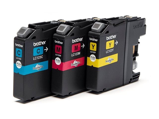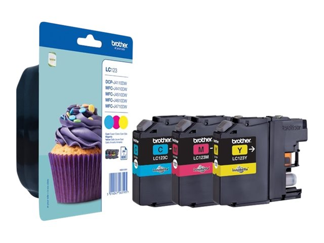 Brother LC123 RainbowPack - 3-pack - Lång livslängd - gul, cyan, magenta - original - blister med akustiskt / elektromagnetiskt alarm - bläckpatron - för Brother DCP-J132W, DCP-J172W, DCP-J4110DW, DCP-J552DW, DCP-J752DW