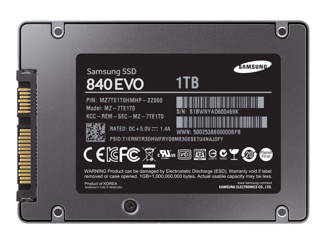 Samsung 840 EVO MZ-7TE1T0 - SSD - 1 TB - inbyggd - 2.5" - SATA 6Gb/s - buffert: 1 GB