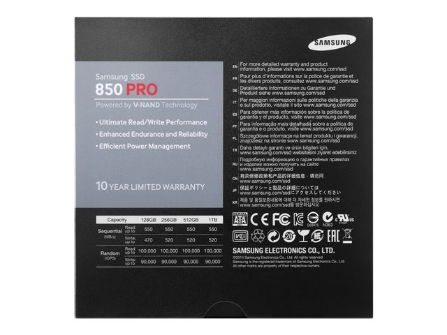 Samsung 850 PRO MZ-7KE128BW - SSD - krypterat - 128 GB - inbyggd - 2.5" - SATA 6Gb/s - buffert: 256 MB - Self-Encrypting Drive (SED), TCG Opal Encryption 2.0