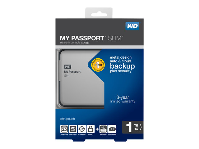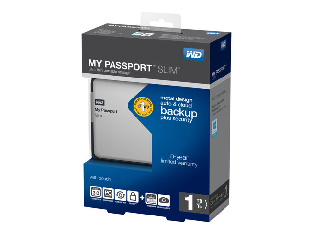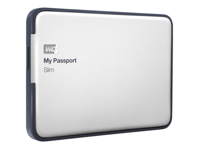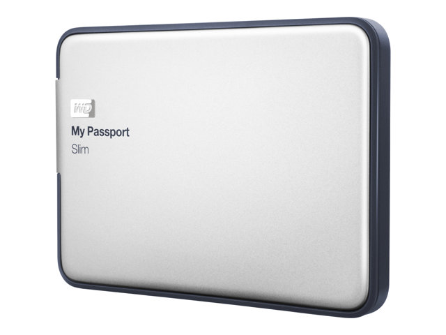 WD My Passport Slim WDBGMT0010BAL - Hårddisk - krypterat - 1 TB - extern (portabel) - USB 3.0 - silver