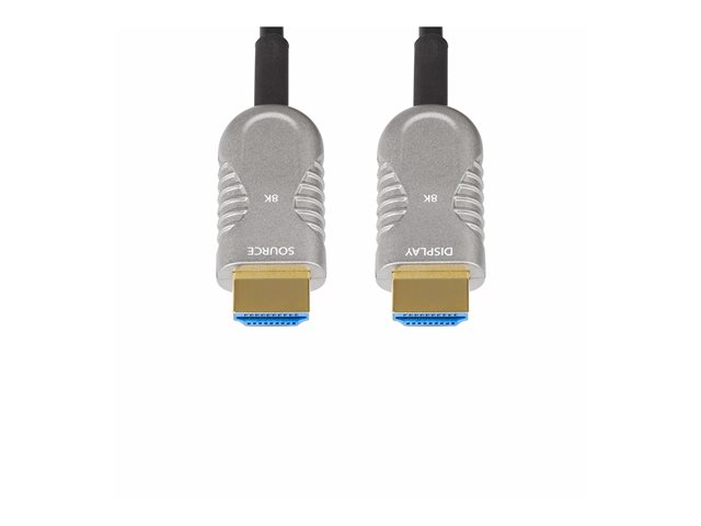 StarTech.com 50ft (15.2m) HDMI 2.1 Hybrid Active Optical Cable (AOC), CMP, Plenum Rated, 8K Ultra High Speed HDMI Fiber Optic Cable, 48Gbps, 8K 60Hz/4K 120Hz, HDR10+/FRL/TMDS/eARC - CMP In Wall HDMI 2.1/2.0 Cord (8K-A-50F-HDMI-CABLE) - Ultra High Speed - HDMI-kabel - HDMI hane till HDMI hane - 15.2 m - hybrid koppar/fiberoptisk - svart - Active Optical Cable (AOC), 4K120Hz stöd, 8K60Hz stöd, 4K60Hz stöd