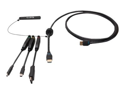 C2G 6ft (1.8m) 4K HDMI Premium Cable and Dongle Adapter Ring with Color Coded Mini DisplayPort, DisplayPort, and USB-C - Videoadaptersats - svart - 4K60Hz stöd, 4K 30 Hz-stöd (mDP), guldblinkade kontakter, 4K 30 Hz-stöd (DisplayPort)