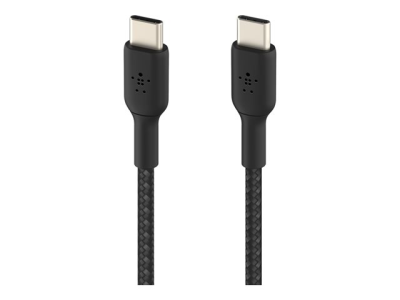 Belkin BoostCharge - USB-kabel - 24 pin USB-C (hane) till 24 pin USB-C (hane) - USB 2.0 - 20 V - 3 A - 15 cm - USB Power Delivery (60W), flätad kabel - svart