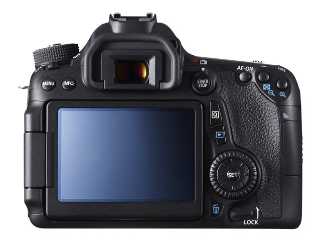 Ytterligare funktionerRGB primärt färgfilter, automatisk effektsparande, knapp för förhandsvisning av djupskärpa, avkänningsfunktion för kameraorientering, exponeringsmätare, storleksändra en bild, förberedd för GPS, visning av belyst punkt, inbyggd hjälp, autobelysningsoptimerare, RAW-bearbetning i kamera, perifer belysningskorrigering, CAC (Chromatic Aberration Compensation), Multi-Frame-brusreducering, HDR-bildförbättringsteknik, Eye-Fi Card Ready, Scene Intelligent Auto-teknik, brusreducering vid lång exponering, hög ISO-hastighetsbrusreducering, Dual Pixel CMOS AF-teknologi