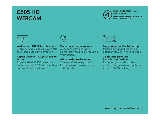 C505 är en webbkamera med HD 720p-video och mikrofon med lång räckvidd som stöder tydliga, naturliga samtal på upp till 3 meters avstånd. Plus en extra lång USB-A-sladd på 2 meter som ger unika, mångsidiga monteringsalternativ.