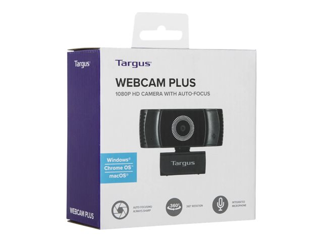 Targus Webcam Plus - Webbkamera - färg - 2 MP - 1920 x 1080 - 1080p - ljud - USB 2.0 - H.264, MJPEG, H.265