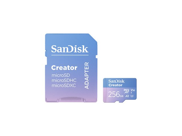SanDisk Creator - Flash-minneskort (microSDXC till SD-adapter inkluderad) - 256 GB - A2 / Video Class V30 / UHS-I U3 - mikroSDXC UHS-I