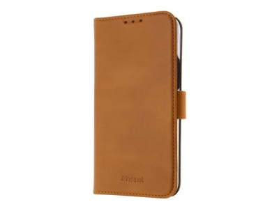 Insmat - Vikbart fodral för mobiltelefon - läder, polykarbonat, kartong+papper+aluminiumfolie, bomullssömmar - brun - för Apple iPhone 14 Pro 650-3121