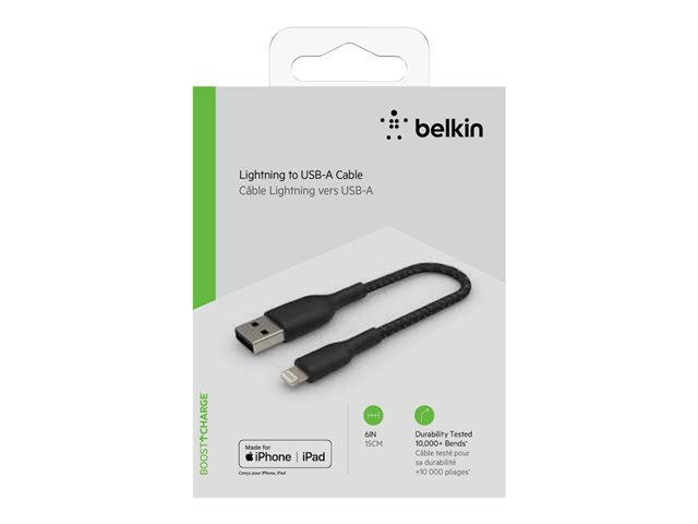 Belkin BoostCharge - Lightning-kabel - Lightning hane till USB hane - 15 cm - svart CAA002BT0MBK