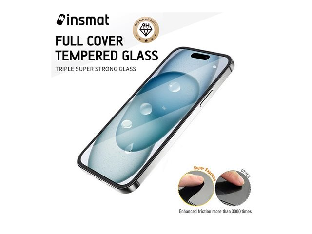 Insmat - Skärmskydd för mobiltelefon - lätt och anti-damm, super full täckning - glas - ramfärg svart - för Apple iPhone 16 Pro 861-1610