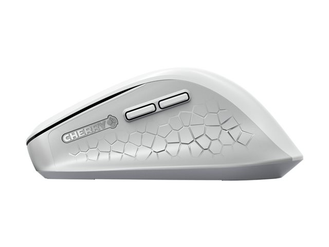 CHERRY STREAM MOUSE COMFORT - Mus - ergonomisk - högerhänt - optisk - 6 knappar - trådlös - 2.4 GHz - trådlös USB-mottagare - vit/grå