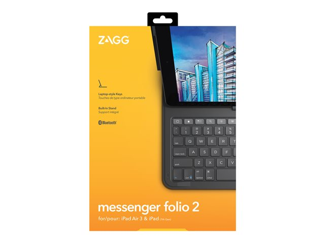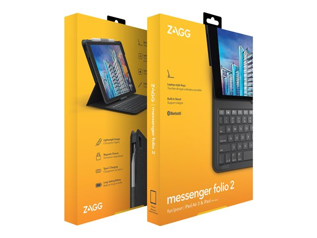 ZAGG Messenger Folio 2 - Tangentbord och foliefodral - Bluetooth - Nordisk - träkol tangentbord, träkol fodral - för Apple 10.2-inch iPad; 10.5-inch iPad Air (3:e generationen)