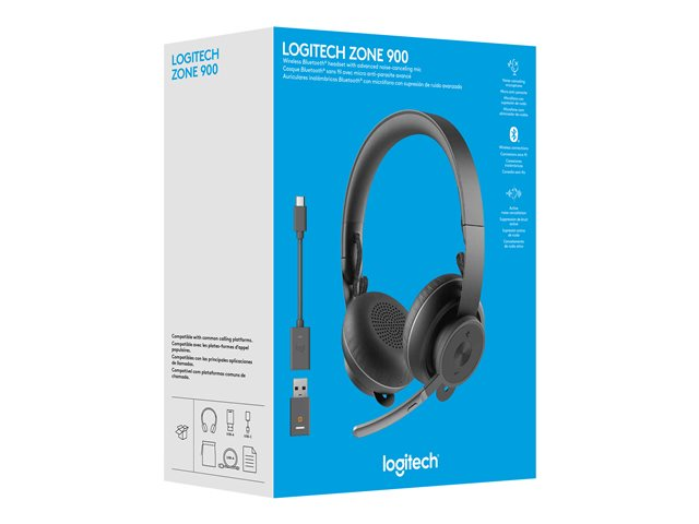 Logitech Zone 900 gör att du kan gå in i zonen med fantastiskt ljud för samtal och musik, aktiv brusreducering och en brusreducerande mikrofon. Använd Logitech Unifying-teknik för att ansluta upp till sex kompatibla tillbehör med en mottagare.