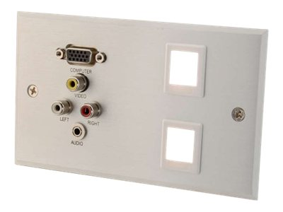 C2G RapidRun Single Gang Integrated HD15 + 3.5mm + RCA Audio/Video Wall Plate + 2 Keystones - Monteringsplatta - HD-15, RCA X 3, minihörlurskontakt, stereo 3,5 mm - borstad aluminium - 1-gang 87100
