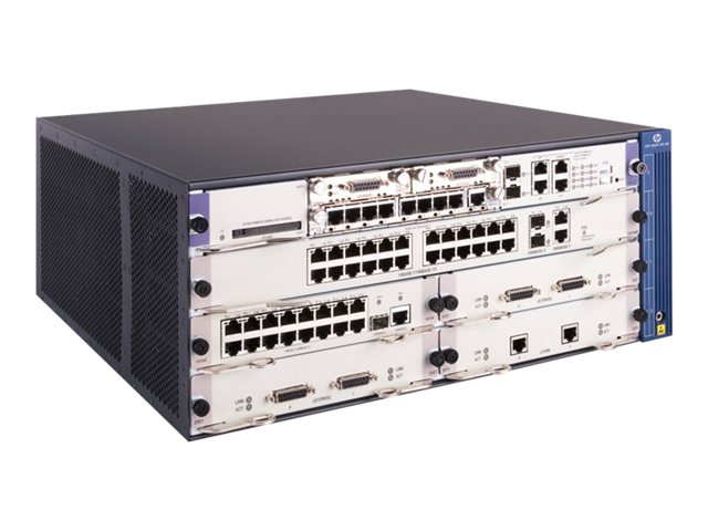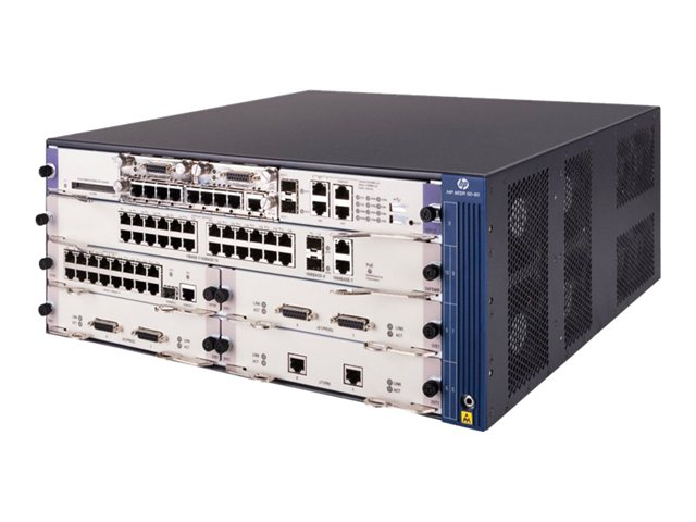 The HPE A-MSR50 series multi-service routers are enterprise modular routers designed for large enterprise branches and regional offices as well as medium-sized businesses. The A-MSR50 series routers deliver high-performance, secure, integrated services on a single platform. They feature a modular design and can accommodate embedded hardware-based encryption and voice processing. With a full-featured, resilient routing platform, including IPv6 and MPLS support, as well as comprehensive integrated security services, these routers enhance network functionality and simplify management and complexity. The 4U-high A-MSR50-60 router chassis offers flexible, feature-rich open application architecture (OAA)-ready resilient routing, from the core to the edge.