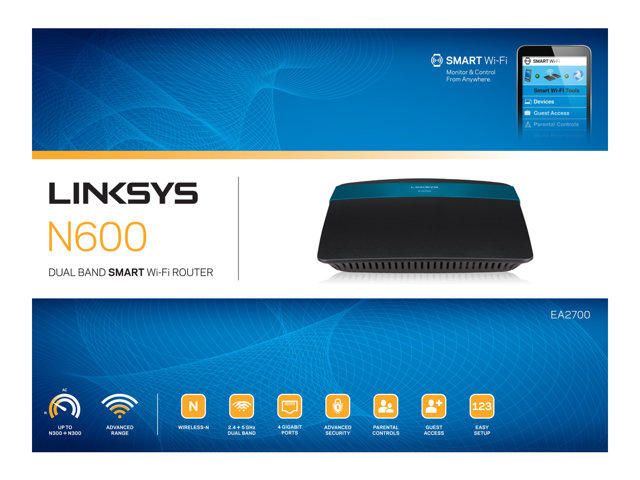 Linksys EA2700 - Trådlös router 4-ports-switch - 1GbE Dubbelband EA2700-EN