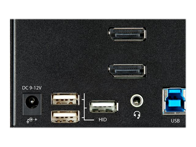 StarTech.com 2-ports DisplayPort KVM-switch för tre skärmar - 4K 60 Hz UHD HDR - Desktop DP 1.2 KVM med 2 portar USB 3.0-hubb (5 Gbit/s) och 4x USB 2.0 HID-portar, ljud - Snabbtangenter för omkoppling - TAA - Omkopplare för tangentbord/video/mus/ljud - 2 x KVM/ljud - skrivbordsmodell - TAA-kompatibel SV231TDPU34K