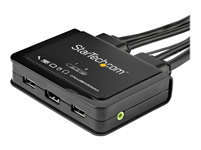 StarTech.com HDMI KVM-switch med 2 portar - 4K 60 Hz - Kompakt UHD/ultra HD USB KVM-switch för stationära datorer med dubbelport och inbyggda 1,2 m kablar samt audio - Bussdriven och fjärrswitchad - MacBook ThinkPad - Omkopplare för tangentbord/video/mus/ljud - 2 x KVM/ljud - 1 lokal användare - skrivbordsmodell SV211HDUA4K
