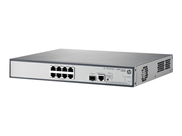 HPE 1910-8G-PoE+ (180W) Switch - Switch - L3 - Administrerad - 8 x 10/100/1000 (PoE+) + 1 x SFP - rackmonterbar - PoE+