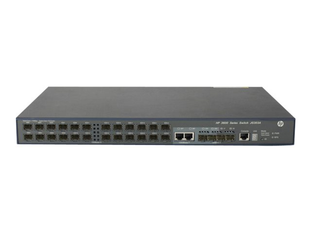 HPE 3600-24-SFP v2 EI - Switch - L4 - Administrerad - 24 x 100 Mbit SFP + 4 x Gigabit SFP + 2 x delad 10/100/1000 - rackmonterbar JG303A#ABB