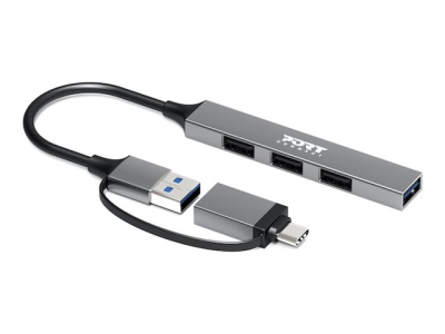 PORT Connect USB-A till USB-C-adapter och hubb ger sömlös anslutning med en kompakt och elegant design. Enheten har en USB-A-kabel som är 10 cm lång, vilket gör den idealisk för användning i olika miljöer, både hemma och på kontoret. Med totalt fyra portar, inklusive tre USB 2.0-portar och en SuperSpeed USB-port, erbjuder den mångsidiga anslutningsmöjligheter för flera enheter samtidigt som den garanterar snabba dataöverföringshastigheter på upp till 5 Gbps för USB 3.0 och 480 Mbps för USB 2.0. Plug-and-Play-kompatibiliteten gör installationen enkel, så att användarna kan fokusera på det som är viktigast utan krångliga installationer. Denna USB-hubb är tillverkad i ett hållbart aluminiumhölje och är utformad för att tåla daglig användning samtidigt som den har en slimmad profil som inte kompromissar med funktionaliteten. Dess skrivbordsformat gör den enkel att integrera i alla arbetsutrymmen och skapar en snygg och organiserad installation. PORT Connect-adaptern uppfyller olika standarder, inklusive WEEE och UKCA, vilket gör den till ett pålitligt val för användare som värdesätter både prestanda och hållbarhet.