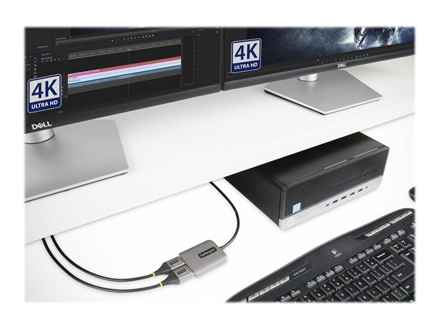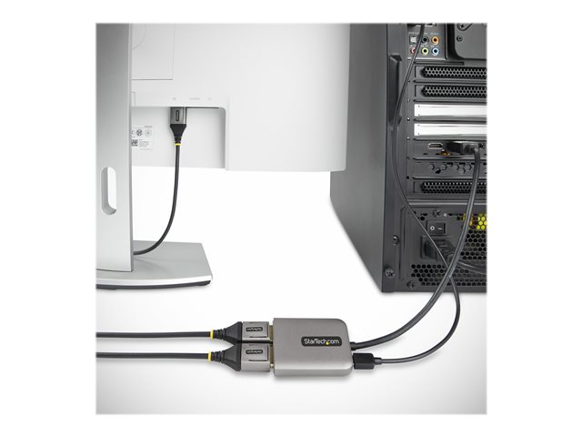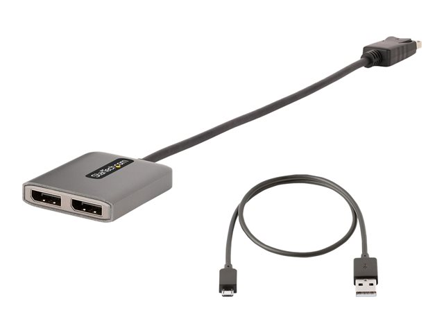 StarTech.com 2-Port DisplayPort MST Hub, Dual 4K 60Hz, DP to 2x DisplayPort Monitor Adapter, DP 1.4 Multi-Monitor Video Adapter w/ 1ft Built-in Cable, USB Powered, Windows Only - Multi Stream Transport Hub (MST14DP122DP) - Hubb - 1 x DisplayPort + 1 x micro-USB + 2 x DisplayPort