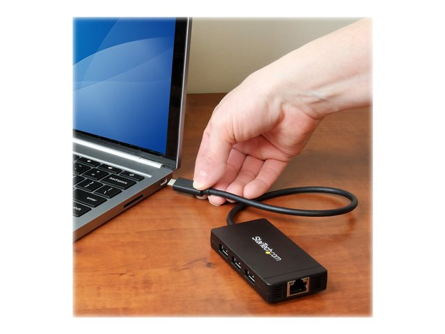 StarTech.com USB-C-hubb med 3 portar och Gigabit Ethernet - USB-C till 3x USB-A - USB 3.0 - strömadapter medföljer - Hubb - 3 x SuperSpeed USB 3.0 + 1 x 10/100/1000 - skrivbordsmodell