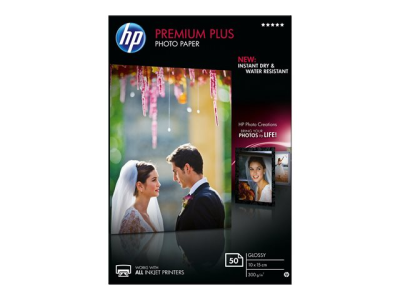 HP Premium Plus Photo Paper - Blank - 100 x 150 mm - 300 g/m² - 50 ark fotopapper - för Envy 50XX, 7645; Officejet 52XX; PageWide MFP 377; Photosmart B110, Wireless B110