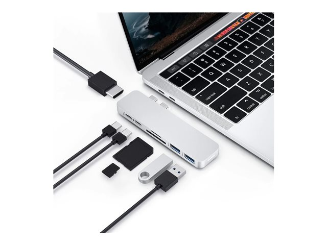 HyperDrive Duo 7-in-2 Hub - Dockningsstation - USB-C x 2 - HDMI HD28C-SILVER
