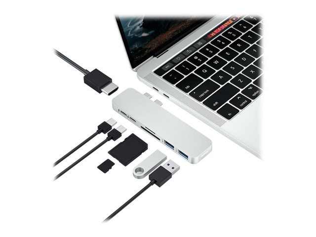 Form-fitting USB-C hub with 4K 60Hz HDMI & Magnetic Grip for MacBook Pro and MacBook Air. This USB-C docking station securely attaches to MacBook adding 7 ports: 4K 60Hz HDMI output, USB-C PD, Thunderbolt 3 compatible, and more.