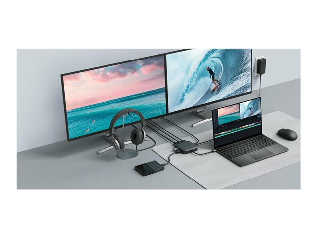 The Targus HyperDrive Mobile Dock is designed to expand the capabilities of your mobile or desktop setup. With its comprehensive interface options including Ethernet for reliable networking, HDMI and DisplayPort for high-definition video output, and SuperSpeed USB 3.0 for rapid data transfer, this docking station is a versatile addition to any tech environment. The inclusion of USB4 with Power Delivery (100 W) not only ensures your device stays charged but also maintains a clutter-free workspace by minimizing the need for additional power adapters. Furthermore, the dock's support for dual displays and resolutions up to 8K at a 30 Hz refresh rate makes it a suitable solution for professionals seeking to enhance their productivity and visual experience. Whether you're working from home, in the office, or on the go, the Targus HyperDrive Mobile Dock offers a seamless transition to a desktop-like setup, ensuring you stay connected and productive.