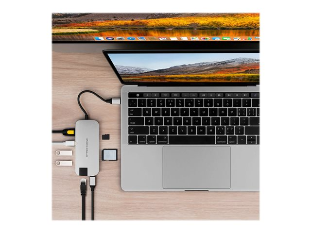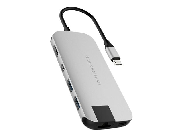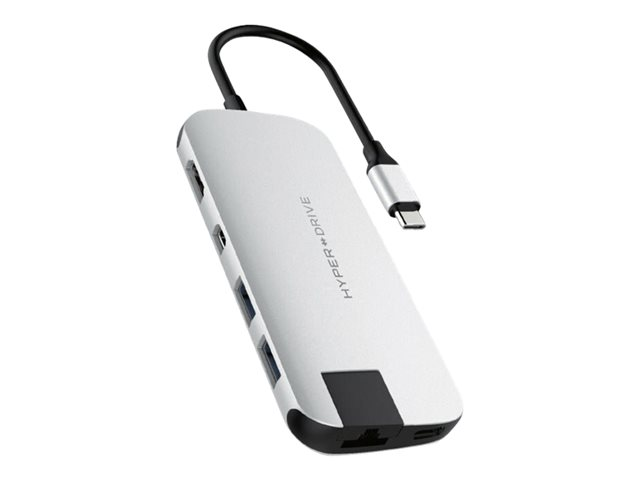 HyperDrive Slim 8-in-1 Hub - Dockningsstation - USB-C - HDMI, Mini DP - 1GbE HD247B-SILVER