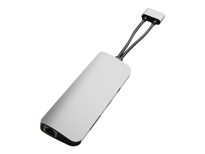 Turns two USB-C ports into 10 ports with 2 x 4K 60Hz HDMI, 3 x USB-A, Gigabit Ethernet, MicroSD/SD, 60W USB-C power delivery, and a 3.5mm audio jack.